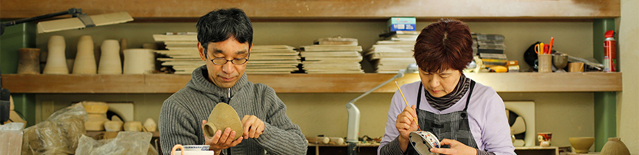 古来、東大路から日吉地区に至る路を醍醐街道瓦坂、この地を蛇ケ谷(じゃがたに)としていますが、その名は平安京造営の為ここで瓦を焼いたことによります。山科へ通じるこの路は、忠臣蔵の大石内蔵助が祇園へ通った路とも言われています。豊臣秀吉の墳墓、阿弥陀ヶ峰の西南麓に広がるこの地に初めて窯業が開かれたのは大正2年。以後、京焼・清水焼の主要産地として現在に至り、食器・花器・茶器等を産出、伝統技法を守る窯元が点在しています。